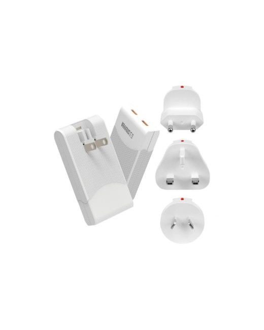 STEFFEN Adaptateur de voyage Monde PD65W 2 x USB-C, blanc